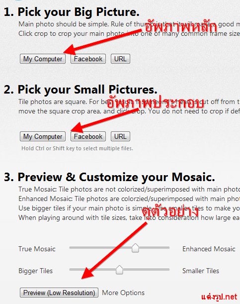 1.Pick your Big Picture อัพโหลดภาพหลัก หรือภาพใหญ่ขึ้นสำหรับทำเป็นภาพโมเสค